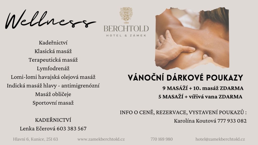 nebo nás kontaktujte na hotel@zamekberchtold.cz, tel: 770 169 980 / 8:00-18:00/, sestavíme Vám vouchery dle Vašeho přání na míru / např. kombinace pobytu s wellness, restaurací, nebo s prohlídkou zámku s panem majitelem/